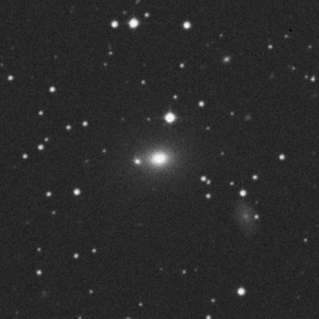 Conditions in the target region: SQM-L 20.6 At 80x slightly elongated, evenly bright. At 200x slightly oval halo with elongated, brighter core area. The elongation could also be an illusion due to two foreground stars WSW. One of them is visible within the halo.
