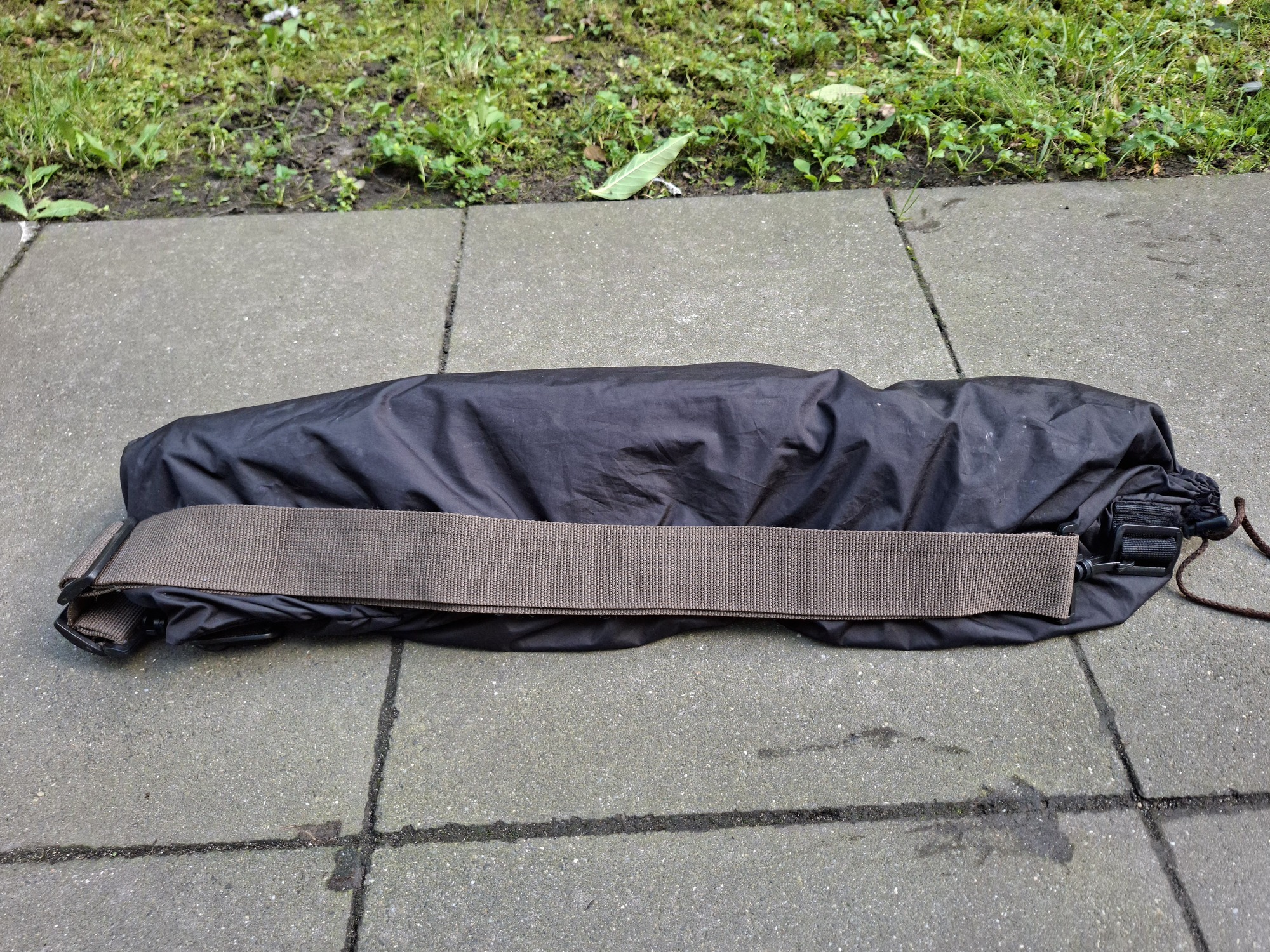 • einfache Stativtasche ohne nennenswerte Polsterung mit Schultergurt (wurde privat genäht)