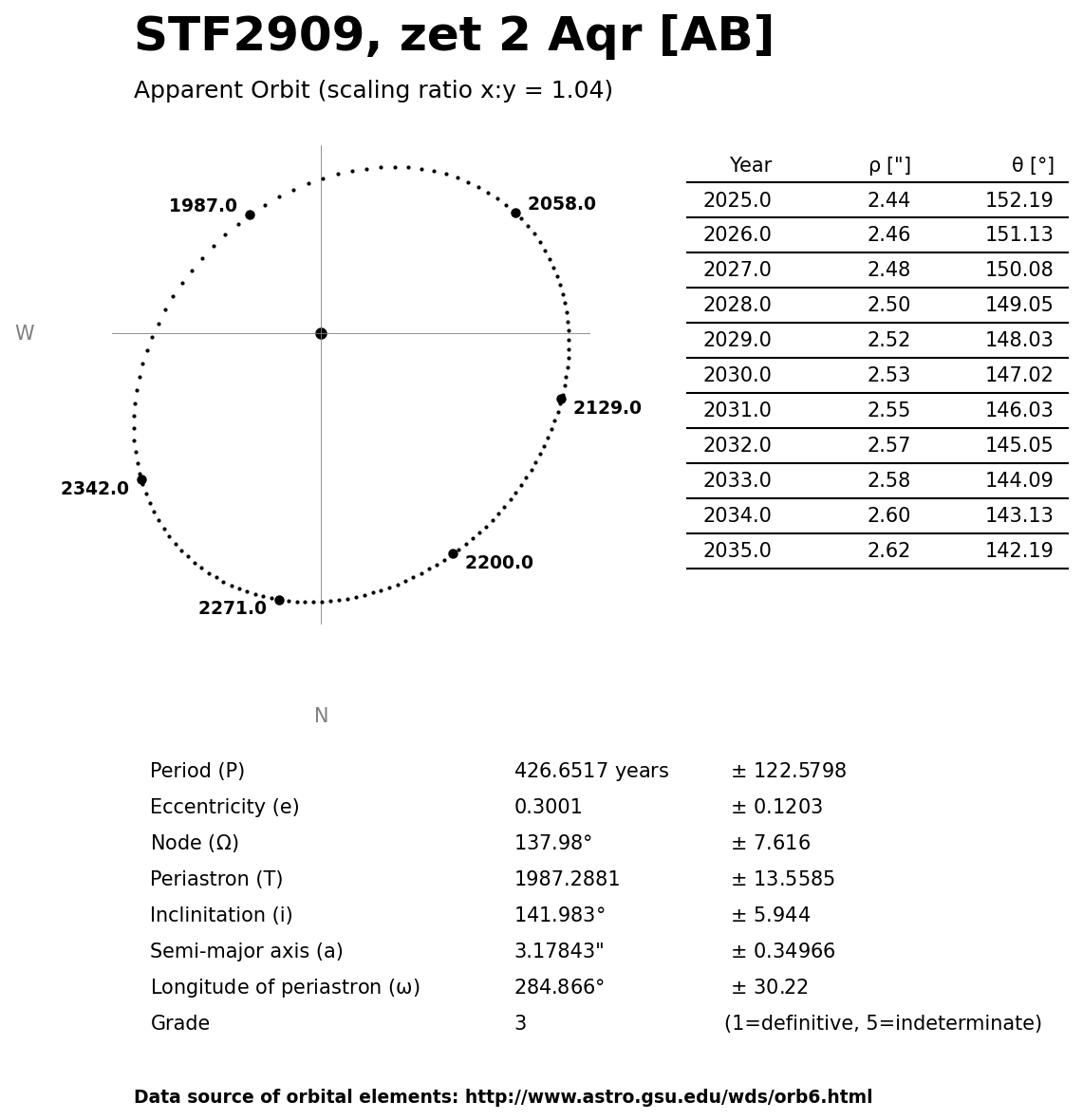 A-BC: Very wide apart but still with the appearance of belonging together. BC a single, fine point of light. Attractive together with STF2993 in 1.6° field of view. Psi1 Aqr and STF2993 are at same elevation in January evenings, a pleasing constellation. |