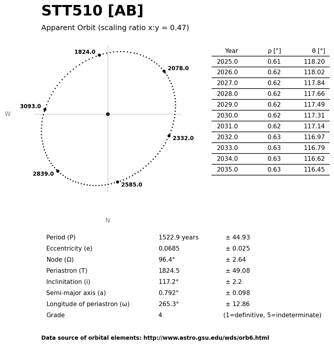 STT507 (AB): Snowman at 205x, hairline split with 333x, A is a soft white and B is light blue, ~1 delta mag. Physical with 565 year period |