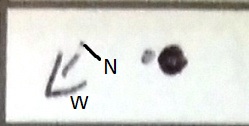 bei 64x ist Komponente B südwestlich von A knapp getrennt erkennbar - großer Helligkeitsunterschied, vielleicht 3 bis 3.5 Größenklassen |