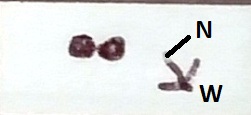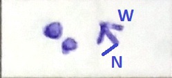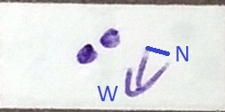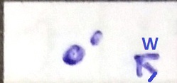 bei 45x ein knapp getrenntes Sternpaar - Komponente B im Südosten von A ist eine dreiviertel Größenklasse schwächer - A hat einen hellgelben Schimmer, B wirkt weiß - bei 72x wandelt sich A zu Cremegelb, B bleibt weiß, trotzdem schön |