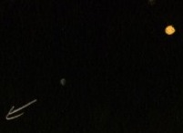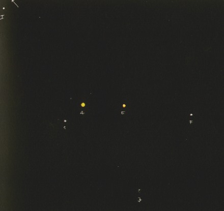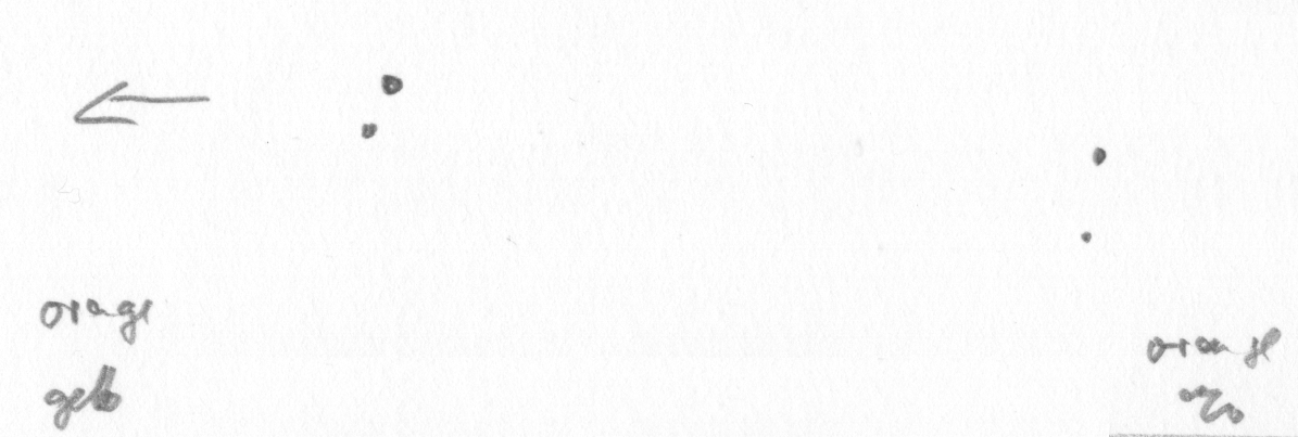 AB: bei 49-fach noch nicht getrennt, aber bereits als zwei schwach goldgelbe Murmelchen aneinander zu sehen - bei 80-fach auch noch nicht getrennt, nun dürfte es Luftunruhe sein - der Farbton bleibt warm goldgelb |