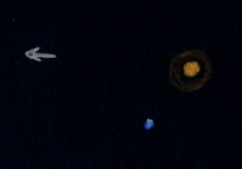 AB: sticht sofort ins Auge aufgrund des stärksten kupferroten Farbtons, den ich seit langem gesehen habe - der Begleiter strahlt bei 49-fach schon weit abgesetzt in einem graublauen, ganz kühlen Farbton |