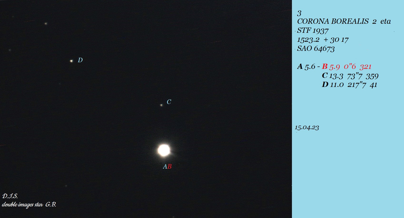 AB: ~3.5" and ~1 delta mag. Double double with STF 3012 |